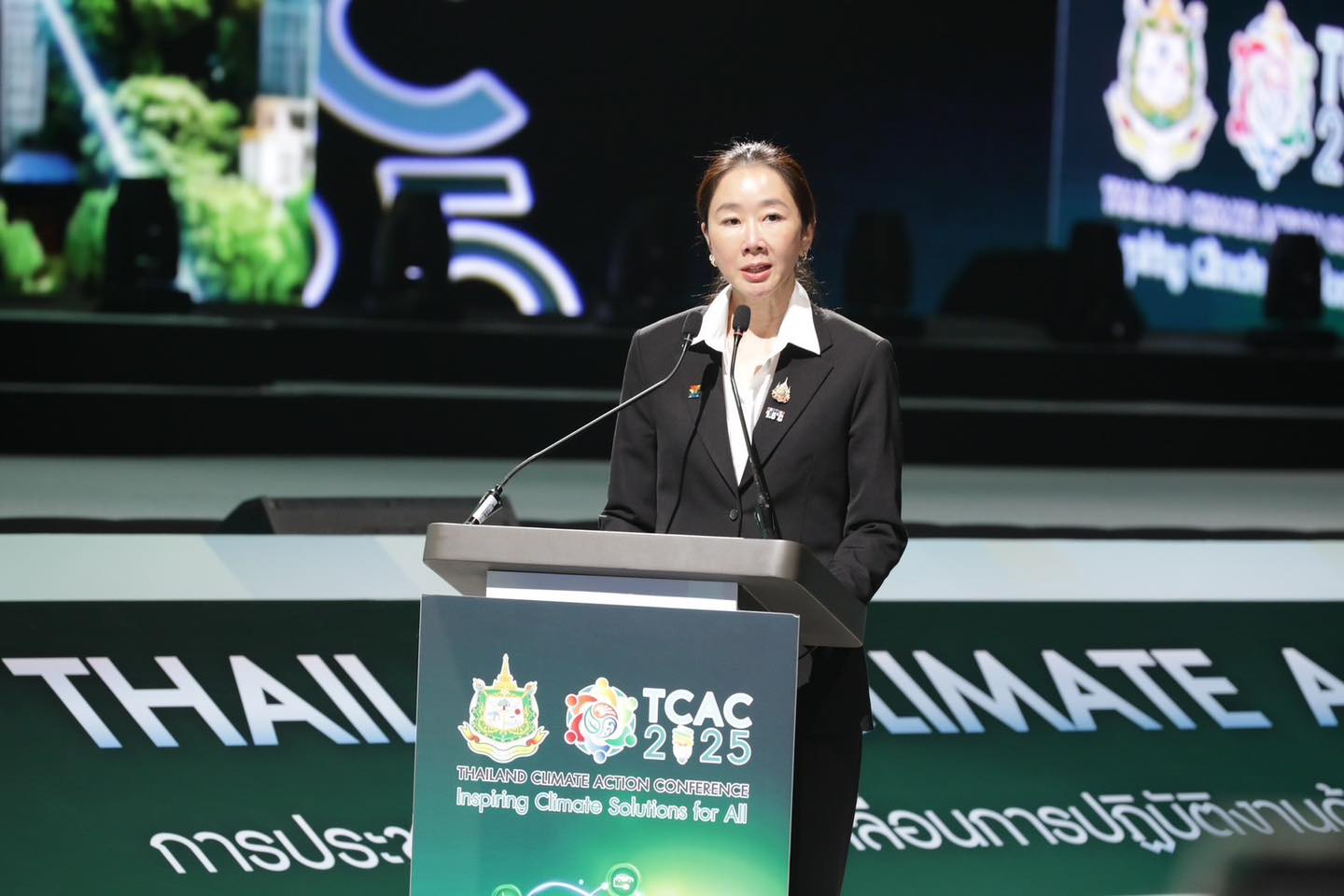 นายสุชาติ ชมกลิ่น รองนายกรัฐมนตรีและรัฐมนตรีว่าการกระทรวงทรัพยากรธรรมชาติและสิ่งแวดล้อม กล่าวว่า “การจัดงาน TCAC 2025 ในปีนี้ จัดขึ้นเป็นครั้งที่ 4 โดยรัฐบาลภายใต้การนำของนายกรัฐมนตรีและรัฐมนตรีว่าการกระทรวงมหาดไทย นายอนุทิน ชาญวีรกุล ได้ให้ความสำคัญกับการดำเนินงานด้านการเปลี่ยนแปลงสภาพภูมิอากาศอย่างจริงจัง ตั้งแต่ระดับนโยบายจนถึงการขับเคลื่อนร่วมกับทุกภาคส่วน เชื่อมโยงกับนานาชาติอย่างเป็นรูปธรรม จึงได้บรรจุไว้ในนโยบายหลักของรัฐบาลที่จะแถลงในวันนี้ ด้านภัยธรรมชาติและสิ่งแวดล้อม ข้อ 12 เร่งติดตั้งเครื่องมือเตือนภัยและพัฒนาเครือข่ายการเตือนภัยพิบัติ โดยพื้นที่ความเสี่ยงสูง และข้อ 13 ผลักดันสังคมคาร์บอนต่ำ ซึ่งการประชุม TCAC 2025 จึงเป็นเวทีสำคัญที่จะแสดงศักยภาพและความสามัคคี ในการกำหนดอนาคตของประเทศร่วมกับประชากรโลก ภายใต้แนวคิด “จุดประกายความคิด ร่วมพลิกวิกฤตโลกเดือด” ที่ทุกคนต้องทำเพื่อโลกนี้ เพื่อส่งต่อโลกที่ดีกว่าให้กับลูกหลานของเราในอนาคต อีกทั้ง ความท้าทายที่ประเทศไทยต้องเผชิญ ตามข้อตกลงปารีส ที่ได้กำหนดเป้าหมายควบคุมอุณหภูมิโลกไม่ให้เกิน 1.5 องศาเซลเซียส แต่ปัจจุบันอุณหภูมิโลกได้สูงถึง 1.75 องศาเซลเซียส ส่งผลให้ประเทศไทยต้องเผชิญกับปัญหาคลื่นความร้อนสูง น้ำท่วมในช่วงฤดูฝน สภาพอากาศเปลี่ยนแปลง กระทบต่อชีวิต ทรัพย์สินและความมั่นคงของประเทศ มีความรุนแรงเพิ่มขึ้นอย่างเห็นได้ชัด จึงต้องเร่งขับเคลื่อนแผนการปรับตัว โดยเฉพาะการเตือนภัยล่วงหน้าให้เห็นเป็นรูปธรรม และถึงแม้ประเทศไทยจะปล่อยก๊าซเรือนกระจกเพียง ร้อยละ 1 ของโลก แต่กลับได้รับผลกระทบจากการเปลี่ยนแปลงสภาพภูมิอากาศ รัฐบาลจึงได้กำหนดเป้าหมาย “การปล่อยก๊าซเรือนกระจกสุทธิเป็นศูนย์” ภายในปี ค.ศ. 2050 และในปี ค.ศ. 2025 จะจัดส่ง “NDC 3.0” โดยวางแผนลดการปล่อยก๊าซเรือนกระจกจาก 5 ภาคส่วนหลัก คือ พลังงาน การขนส่ง อุตสาหกรรม การจัดการของเสีย และการเกษตร ให้ได้ร้อยละ 40 ภายในปี ค.ศ. 2035