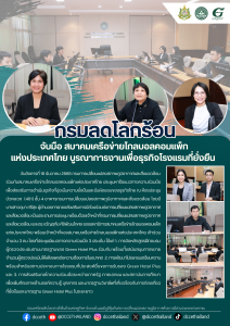 สำหรับสถานประกอบการโรงแรมที่ประสงค์ยื่นขอการรับรอง Green Hotel Plus และ 3.การส่งเสริมกลไกความร่วมมือระหว่างภาครัฐ ภาคเอกชน และสถาบันการศึกษา เพื่อเพิ่มศักยภาพด้านองค์ความรู้ บุคลากร และมาตรฐานวิชาชีพที่เกี่ยวข้องกับการท่องเที่ยว