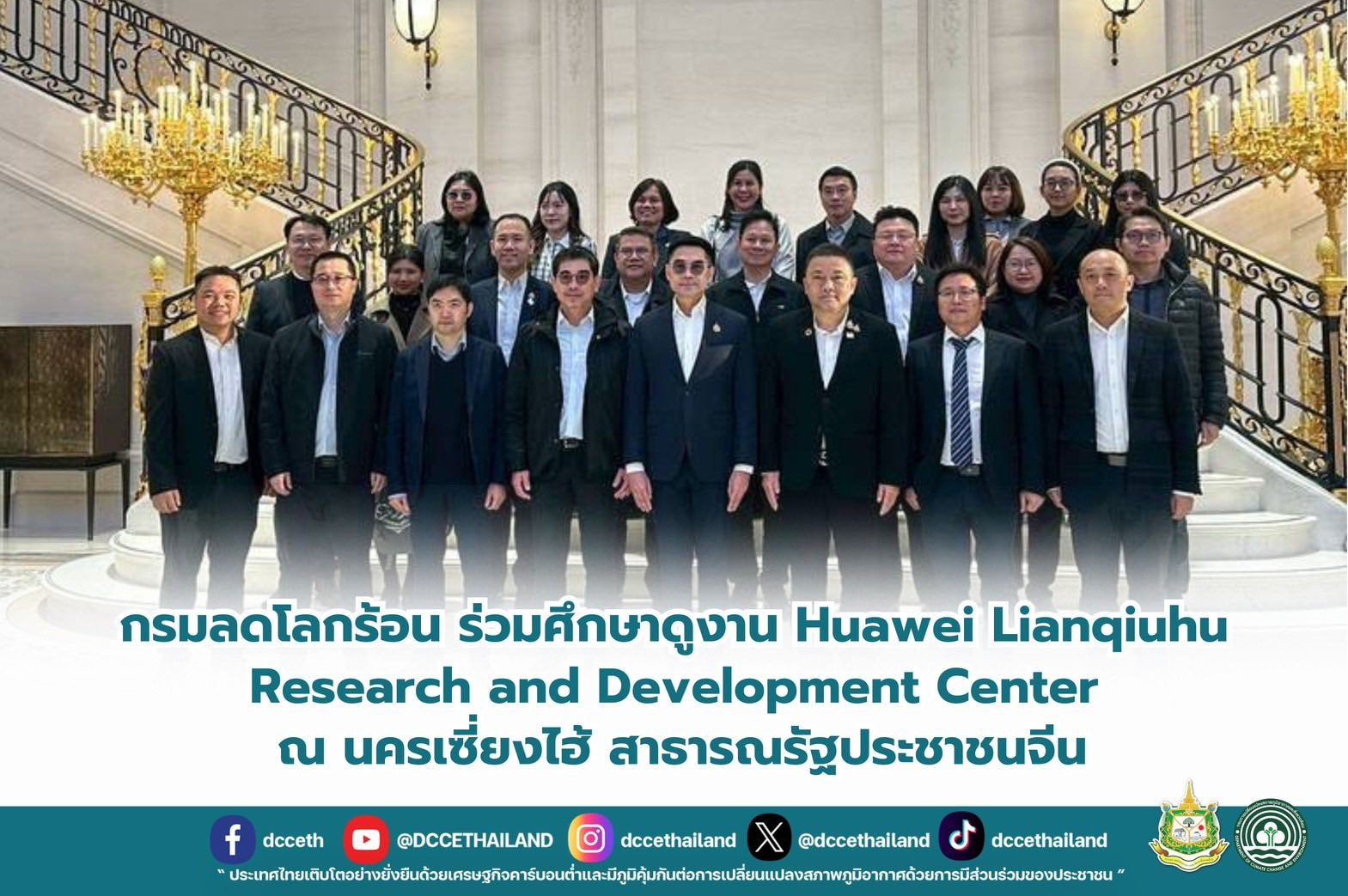 เมื่อวันที่ 17 ธันวาคม 2568 ดร.พิรุณ สัยยะสิทธิ์พานิช อธิบดีกรมการเปลี่ยนแปลงสภาพภูมิอากาศและสิ่งแวดล้อม นายปวิช เกศววงศ์ รองอธิบดีกรมการเปลี่ยนแปลงสภาพภูมิอากาศและสิ่งแวดล้อม นายบรรณรักษ์ เสริมทอง เลขาธิการสำนักงานนโยบายและแผนทรัพยากรธรรมชาติและสิ่งแวดล้อม และนายชยงค์ บริสุทธิ์สวัสดิ์ รองกรรมการผู้จัดการใหญ่ กลุ่มงานเทคโนโลยีคาร์บอนโซลูชั่น และการเติบโตอย่างยั่งยืน บริษัท ปตท.สำรวจและผลิตปิโตรเลียม จำกัด (มหาชน) พร้อมด้วยนายศิวัช แก้วเจริญ ผู้อำนวยการกองขับเคลื่อนการลดก๊าซเรือนกระจก นายกิตติศักดิ์ พฤกษ์กานนท์ ผู้อำนวยการกองยุทธศาสตร์และความร่วมมือระหว่างประเทศ และเจ้าหน้าที่ สส. สผ. และ ปตท.สผ. ได้เข้าร่วมศึกษาดูงานช่วงบ่าย ณ Huawei Lianqiuhu Research and Development Center ศูนย์ R&D ขนาดใหญ่ของ Huawei Technologies มีการวิจัยและพัฒนาเทคโนโลยีดิจิทัล การพัฒนาซอฟต์แวร์ ฮาร์ดแวร์ ซึ่งเป็นเทคโนโลยีขั้นสูง การพัฒนา Digital Solution ในธุรกิจน้ำมันและก๊าซธรรมชาติ โดยเฉพาะอย่างยิ่งในกระบวนการวัดคลื่นไหวสะเทือน (Seismic Processing in Intelligent oil and gas) การนำ AI มาใช้ในกระบวนการเปลี่ยนผ่านพลังงาน รวมทั้งการจัดการพลังงาน และบริษัทได้พัฒนาเทคโนโลยี Digital Twin เพื่อการจัดการเมือง (Smart City) ซึ่งเทคโนโลยีดังกล่าวจะช่วยให้เมืองสามารถจัดการสิ่งแวดล้อมได้อย่างมีประสิทธิภาพตลอดจนลดความลดเสี่ยงจากพิบัติภัยได้อย่างแม่นยำ ทั้งนี้ บริษัทมีเป้าหมาย Net Zero ในปี 2040 โดยใช้ 5 Strategic Pillars ได้แก่ Renewable Energy, Energy Efficiency, Green Products, Supply Chain และ Digital Innovation นอกจากนี้ บริษัท China Petroleum Pipeline Engineering (CCP) ได้นำเสนอ Digital Solution สำหรับเทคโนโลยี CCUS ซึ่ง CCP มีประสบการณ์ในการดำเนินโครงการทั้งในประเทศและต่างประเทศที่ประสบความสำเร็จและสร้างความเชื่อมั่นในการนำเทคโนโลยี CCUS มาใช้เพื่อลดการปล่อยคาร์บอนในอุตสาหกรรมปิโตรเลียม