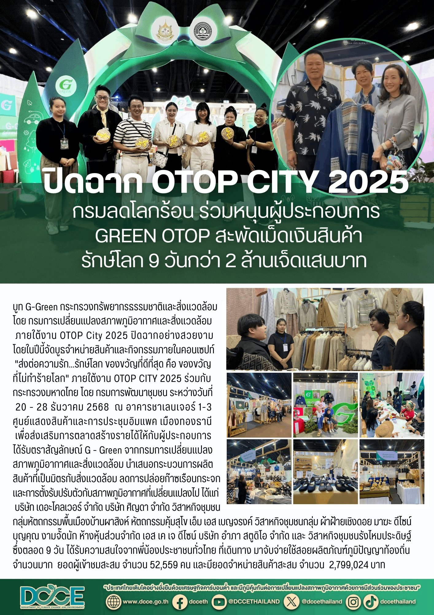ปิดฉาก OTOP CITY 2025 กรมลดโลกร้อน ร่วมหนุนผู้ประกอบการ GREEN OTOP สะพัดเม็ดเงินสินค้ารักษ์โลก 9 วัน กว่า 2 ล้านเจ็ดแสนบาท