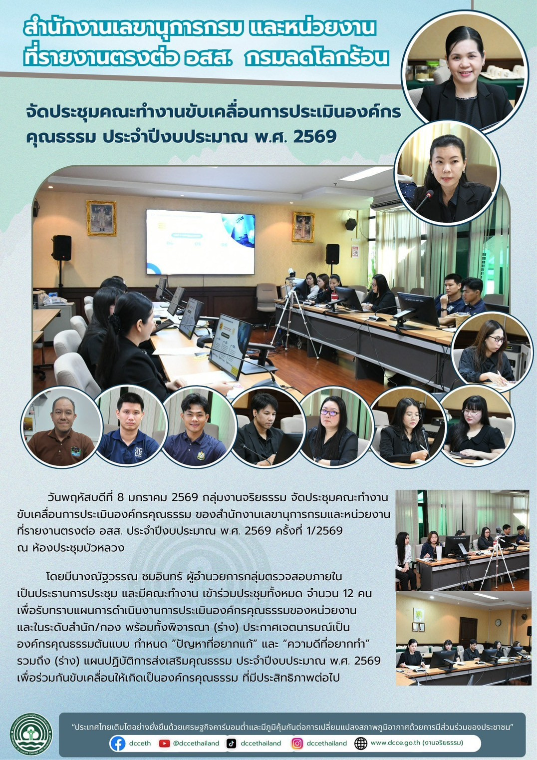 หน้าแรก > ข่าวสำหรับเจ้าหน้าที่ > สส. จัดประชุมคณะทำงานขับเคลื่อนการประเมินองค์กรคุณธรรมของสำนักงานเลขานุการกรม กลุ่มตรวจสอบภายใน กลุ่มพัฒนาระบบบริหาร กลุ่มงานจริยธรรม และกลุ่มกฎหมาย ประจำปีงบประมาณ พ.ศ. 2569 ครั้งที่ 1/2569