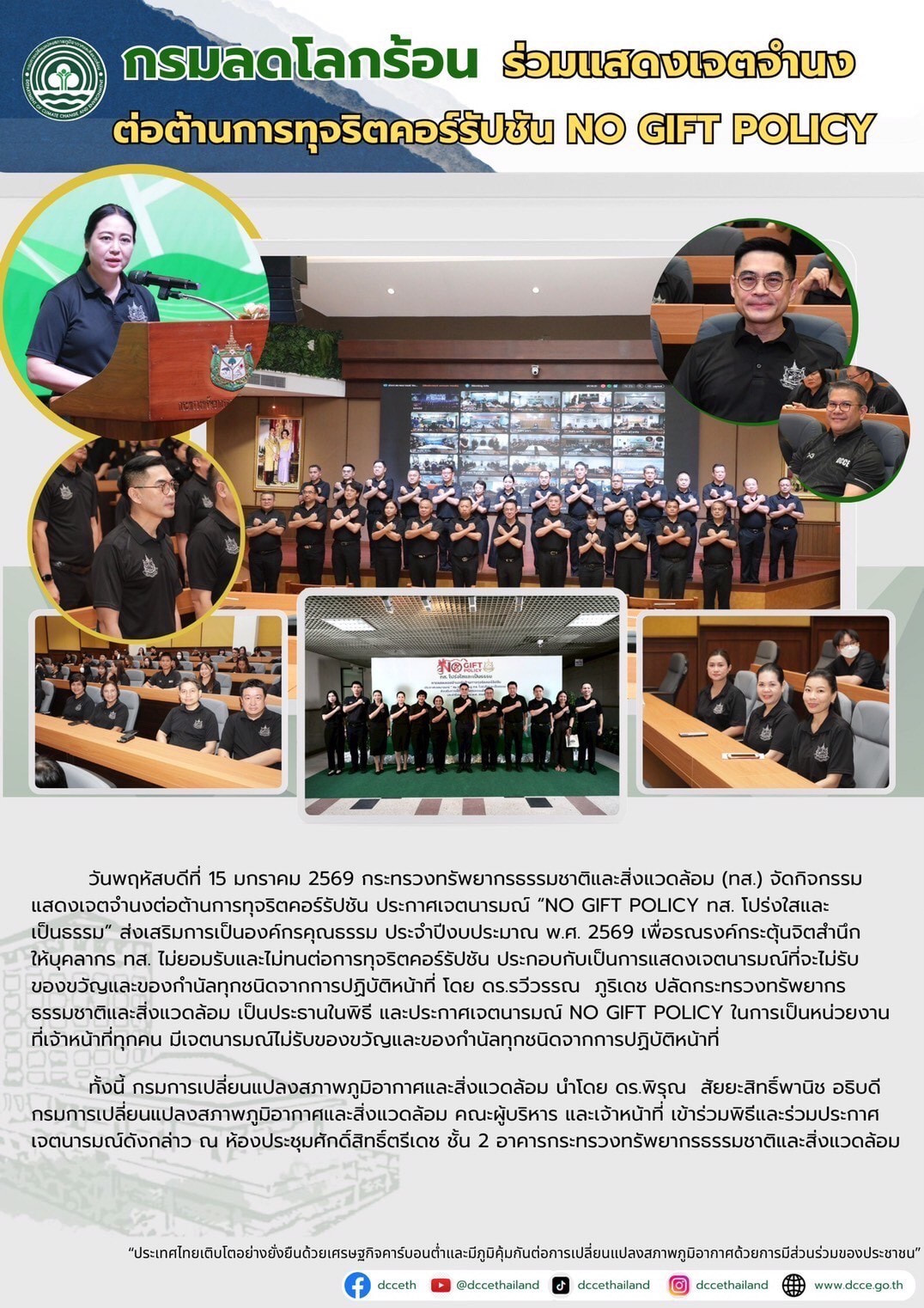 สส. เข้าร่วมกิจกรรมแสดงเจตจำนงต่อต้านการทุจริตคอร์รัปชั่น ประกาศเจตนารมณ์ “No Gift Policy ทส. โปร่งใสและเป็นธรรม” ส่งเสริมการเป็นองค์กรคุณธรรมต้นแบบ ประจำปีงบประมาณ พ.ศ. 2569