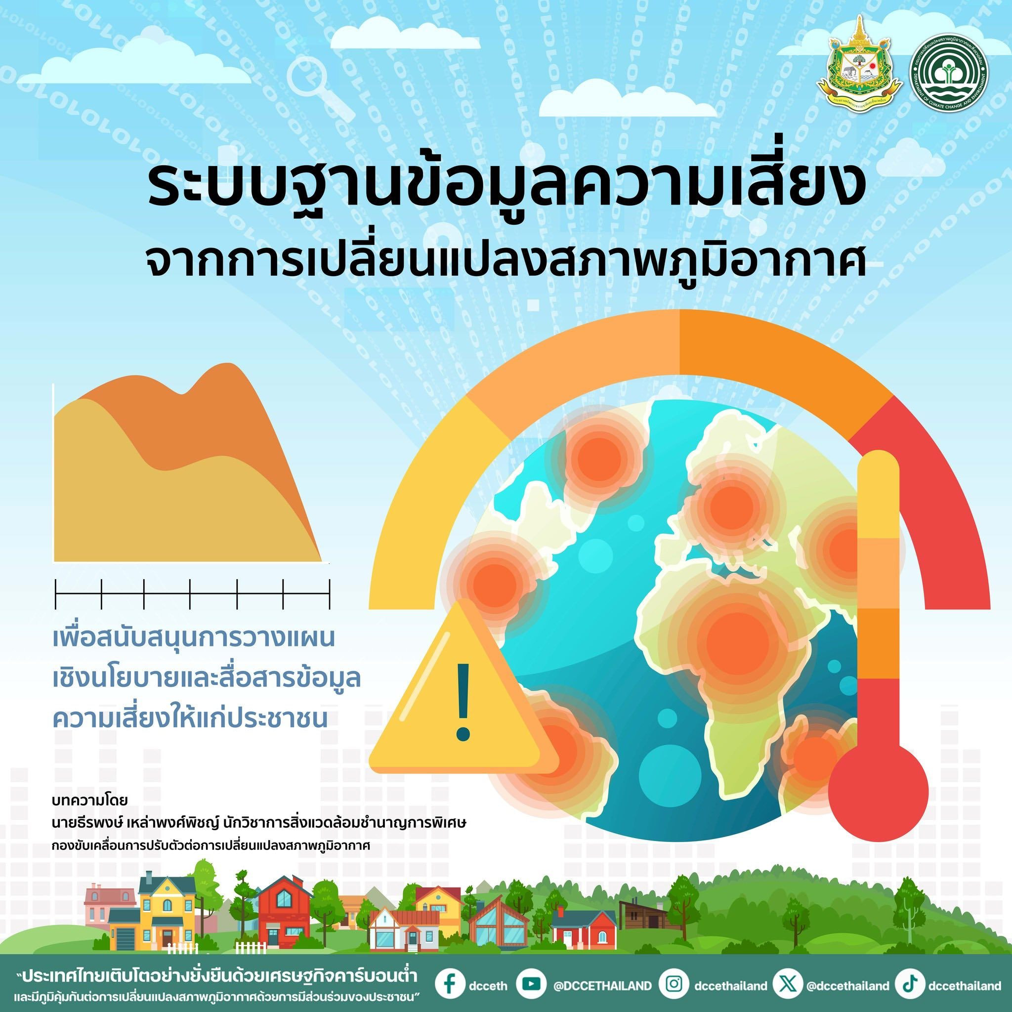 สามารถเข้าใช้งานระบบฐานข้อมูลความเสี่ยงจากการเปลี่ยนแปลงสภาพภูมิอากาศได้ที่เว็บไซต์ ccic.dcce.go.th/riskarea