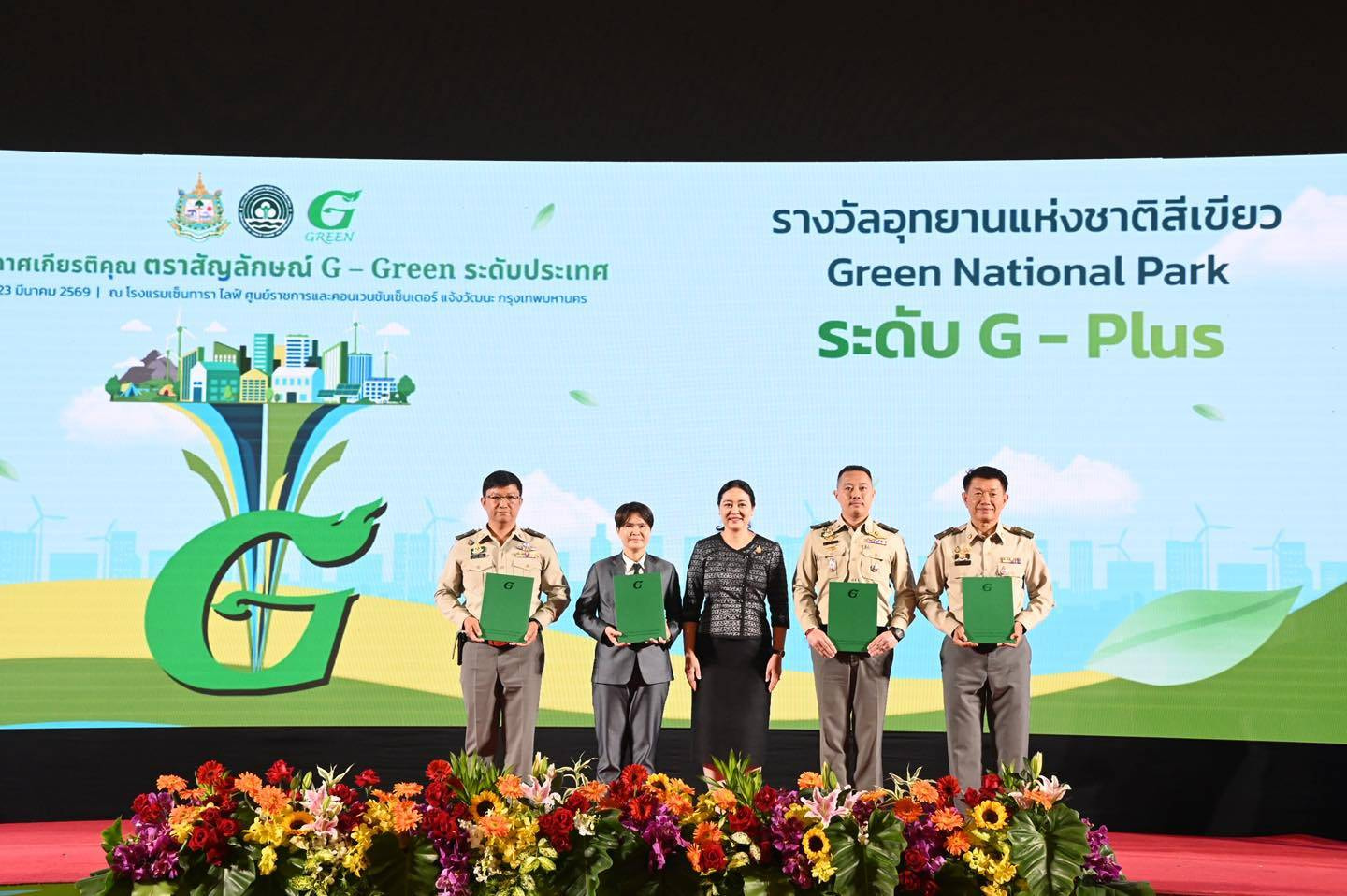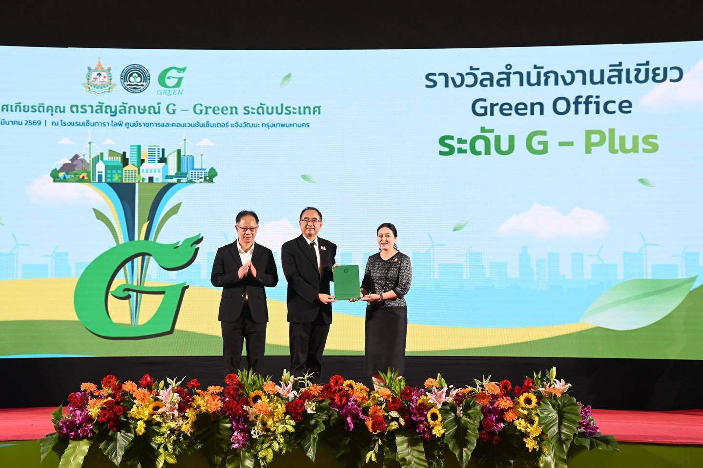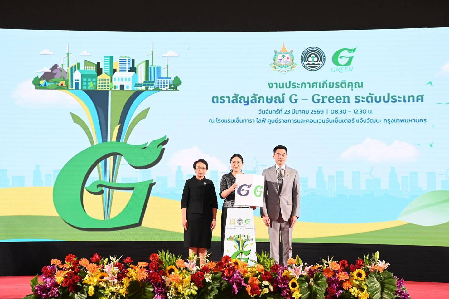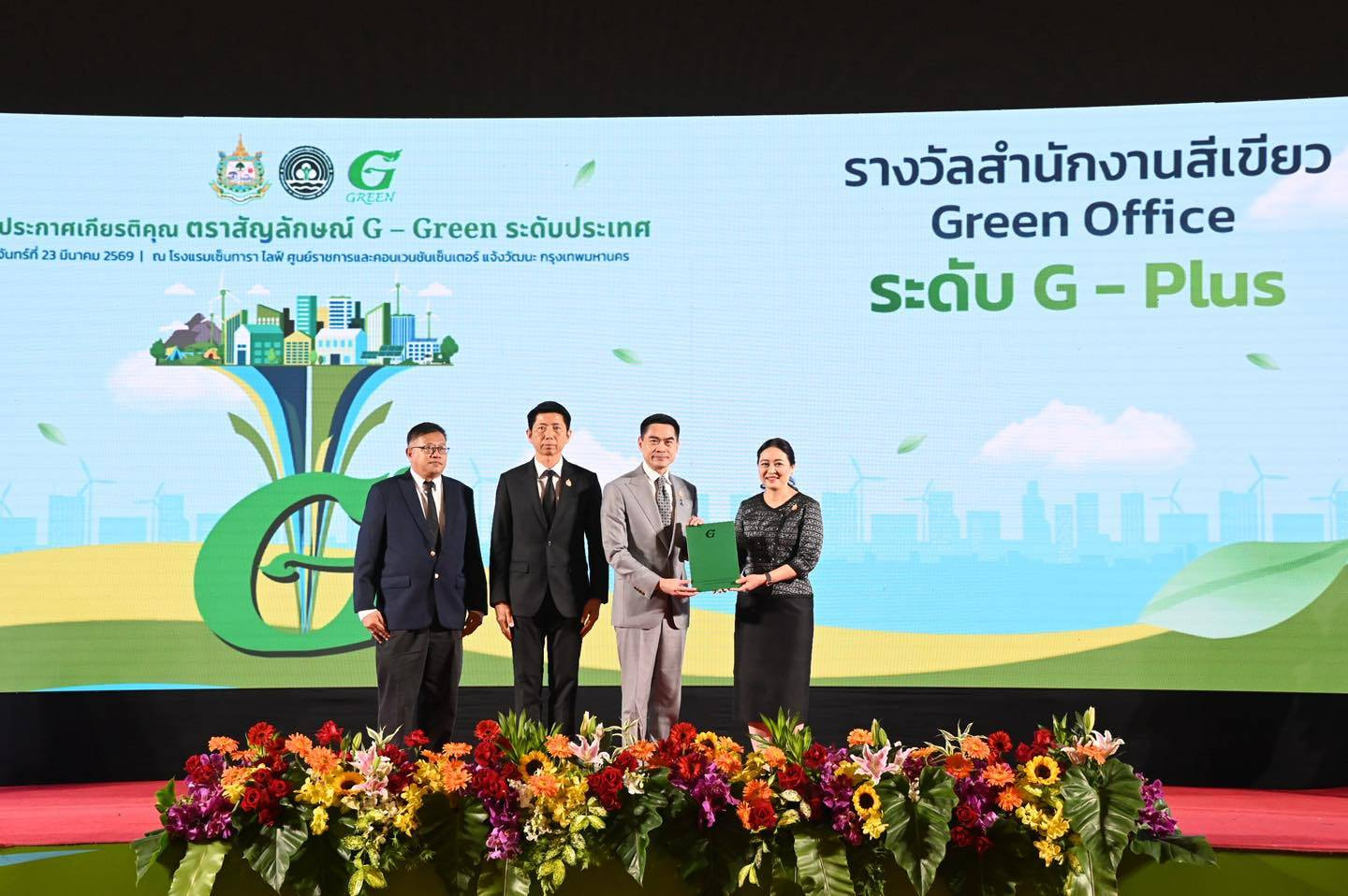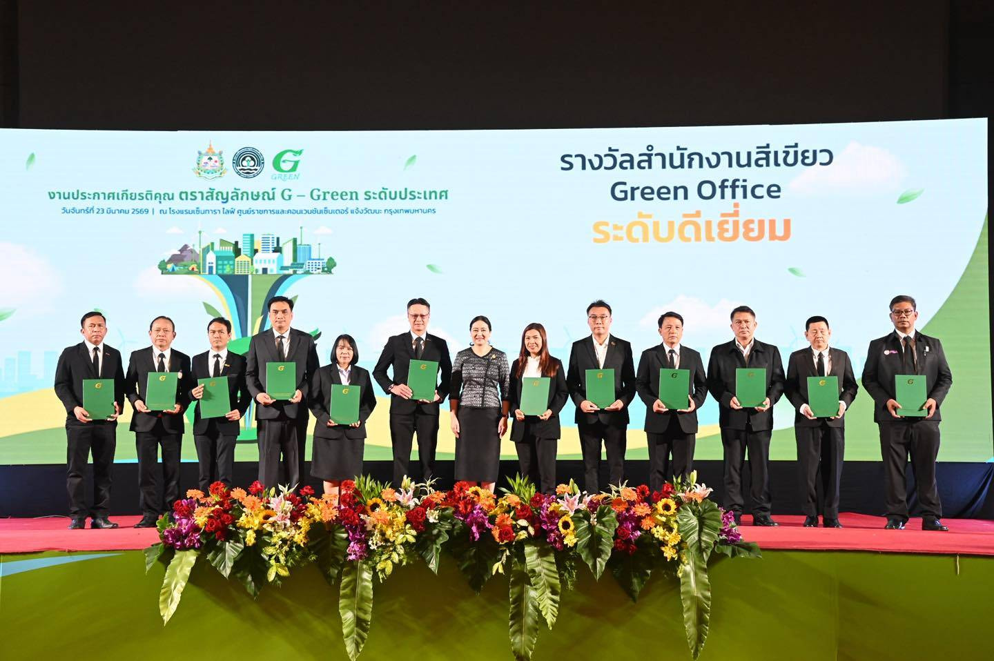 วันที่ 23 มีนาคม 2569 ณ โรงแรมเซ็นทารา ไลฟ์ ศูนย์ราชการและคอนเวนชันเซ็นเตอร์ แจ้งวัฒนะ กรุงเทพฯ กระทรวงทรัพยากรธรรมชาติและสิ่งแวดล้อม (ทส.) โดยกรมการเปลี่ยนแปลงสภาพภูมิอากาศและสิ่งแวดล้อม จัดงานประกาศเกียรติคุณตราสัญลักษณ์ G – Green ระดับประเทศขึ้น โดยมี ดร.รวีวรรณ ภูริเดช ปลัดกระทรวงทรัพยากร ธรรมชาติและสิ่งแวดล้อม เป็นประธานเปิด และให้เกียรติมอบรางวัลตราสัญลักษณ์ G – Green ระดับประเทศ จำนวนทั้งสิ้น 357 รางวัล แบ่งเป็น ระดับ G Platinum จำนวน 3 รางวัล ระดับ G Plus จำนวน 34 รางวัล และระดับดีเยี่ยม G ทอง จำนวน 176 รางวัล รวมทั้งสิ้น 213 รางวัล