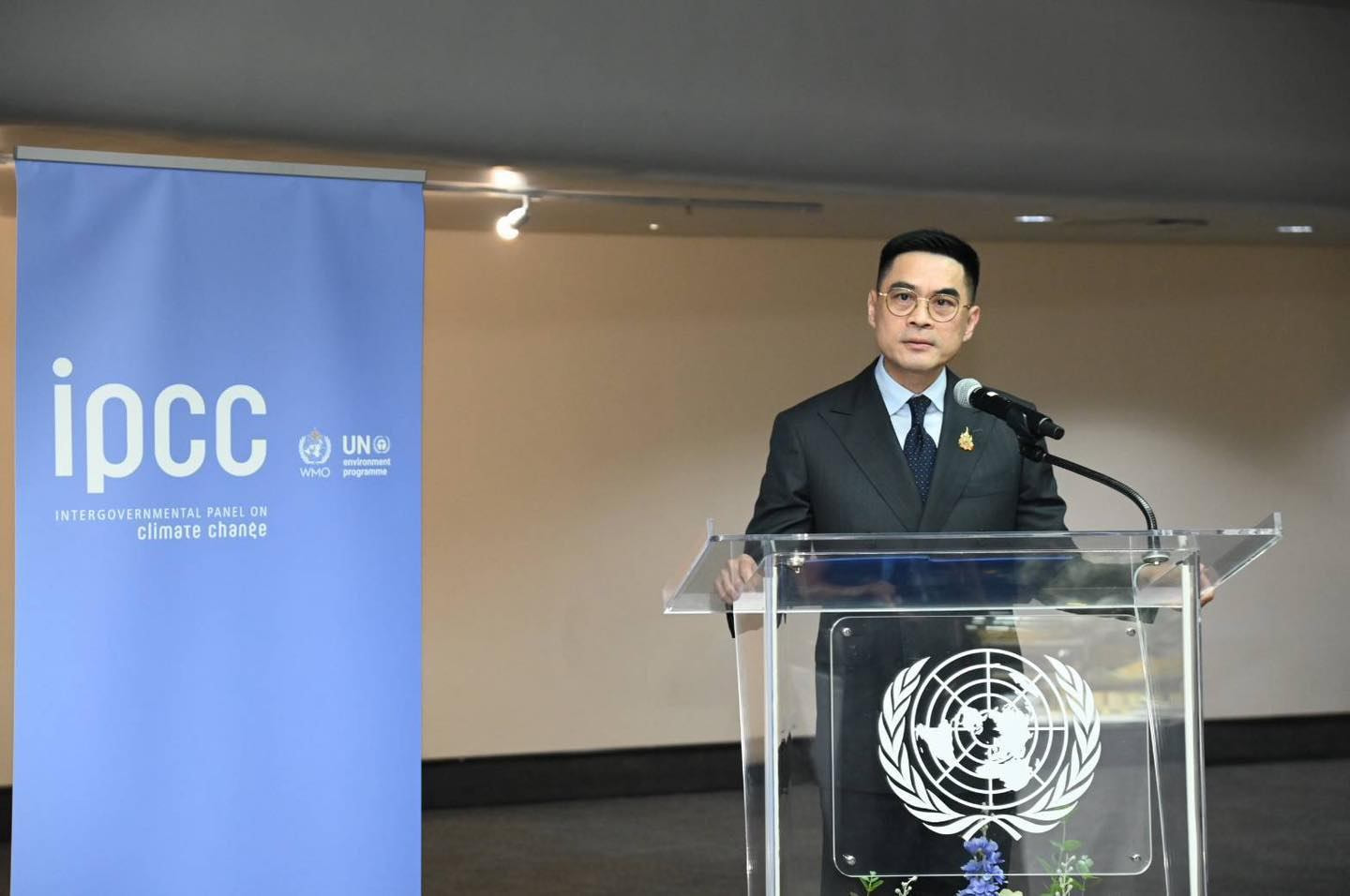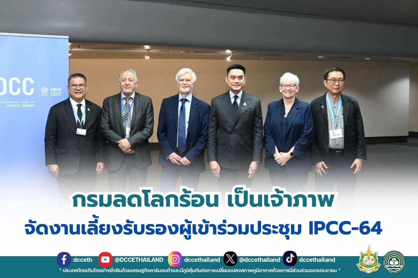 วันที่ 24 มีนาคม 2569 กระทรวงทรัพยากรธรรมชาติและสิ่งแวดล้อม โดยกรมการเปลี่ยนแปลงสภาพภูมิอากาศและสิ่งแวดล้อม เป็นเจ้าภาพงานเลี้ยงรับรองผู้เข้าร่วมประชุมคณะกรรมการระหว่างรัฐบาลว่าด้วยการเปลี่ยนแปลงสภาพภูมิอากาศ ครั้งที่ ๖๔ (The Sixty-fourth Session of the Intergovernmental Panel on Climate Change: IPCC-64) ณ ศูนย์ประชุมสหประชาชาติ กรุงเทพมหานคร โดย ปลัดกระทรวงทรัพยากรธรรมชาติและสิ่งแวดล้อม ได้มอบหมายให้ ดร. พิรุณ สัยยะสิทธิ์พานิช อธิบดีกรมการเปลี่ยนแปลงสภาพภูมิอากาศและสิ่งแวดล้อม เป็นประธานกล่าวต้อนรับผู้เข้าร่วมประชุมในนามของรัฐบาลไทย พร้อมเน้นย้ำว่า แม้โลกของเราจะตั้งอยู่บนพื้นฐานของวิทยาศาสตร์ และนำการวิจัยไปกำหนดนโยบายโลก แต่หัวใจสำคัญของการขับเคลื่อน คือ “ความร่วมมือและมิตรภาพระหว่างผู้คน” ที่จะขับเคลื่อนการดำเนินงานไปสู่จุดมุ่งหมายและสร้างความหวังร่วมกันไปสู่อนาคตที่ดีขึ้น พร้อมหวังว่าผู้แทนที่เข้าร่วมประชุมทุกท่านจะใช้ช่วงเวลาในระหว่างการประชุมให้เกิดผลสัมฤทธิ์ และขอให้สายสัมพันธ์ที่เกิดขึ้นช่วยจุดประกายให้เกิดความร่วมมือที่ทรงพลังต่อไปอีกในระยะยาว แม้ว่าการประชุมนี้จะสิ้นสุดลง และ Professor Sir Jim Skea ประธาน IPCC ได้กล่าวขอบคุณรัฐบาลไทยสำหรับการต้อนรับที่อบอุ่น พร้อมกล่าวชื่นชมความมุ่งมั่นและโครงการริเริ่มที่สำคัญของไทยในการดำเนินงานด้านภูมิอากาศ และคาดหวังว่าการประชุมจะประสบความสำเร็จได้ตามเป้าหมาย