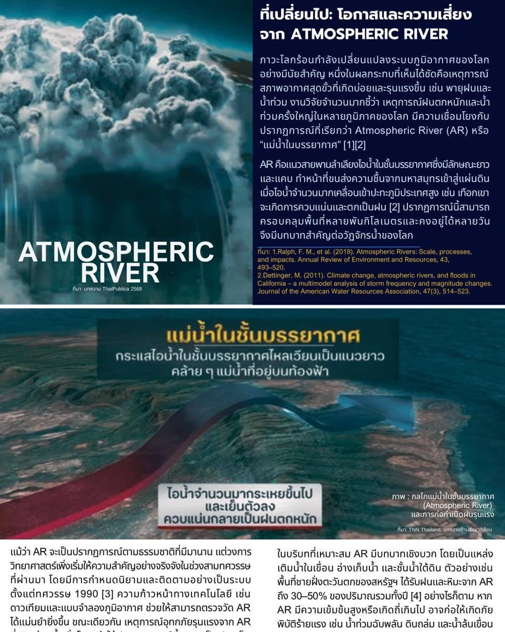 🌧️ เมื่อ “น้ำ” อาจมาในรูปแบบที่คาดไม่ถึง การเข้าใจและเตรียมพร้อมรับมือกับ Atmospheric River จึงไม่ใช่เรื่องไกลตัว แต่เป็นเรื่องสำคัญของทุกภาคส่วนในการก้าวสู่อนาคตอย่างยั่งยืน