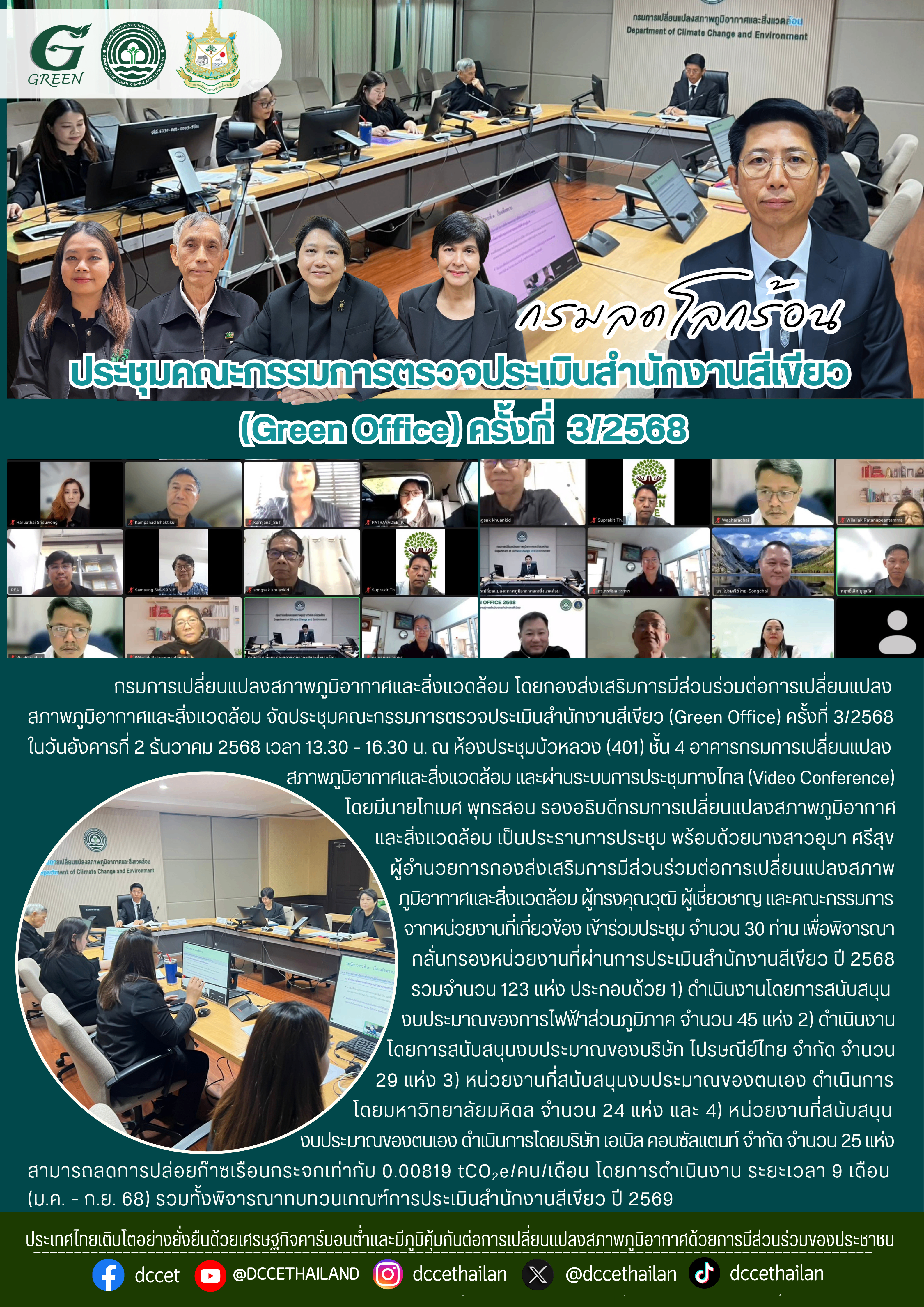 เมื่อวันที่ 1 ธันวาคม 2568 ที่ผ่านมา ดร.พิรุณ สัยยะสิทธิ์พานิช อธิบดีกรมการเปลี่ยนแปลงสภาพภูมิอากาศและสิ่งแวดล้อม นางพรอนงค์ บุษราตระกูล เลขาธิการสำนักงานคณะกรรมการกำกับหลักทรัพย์และตลาดหลักทรัพย์ (ก.ล.ต.) นายอัสเดช คงสิริ กรรมการและผู้จัดการ ตลาดหลักทรัพย์แห่งประเทศไทย (ต.ล.ท.) ร่วมประชุมหารือแนวทางพัฒนาและกำกับกลไกการซื้อขายสิทธิการปล่อยก๊าซเรือนกระจก (Allowance) ภายใต้ร่าง พ.ร.บ.การเปลี่ยนแปลงสภาพภูมิอากาศ พ.ศ. …. พร้อมผู้แทนส่วนงานที่เกี่ยวข้องและบริษัท เดอะ ครีเอจี้ (ที่ปรึกษา)